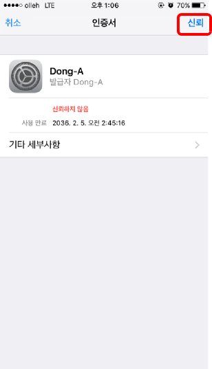 6. <그림6>과 같이 뜨면 신뢰를 터치합니다.